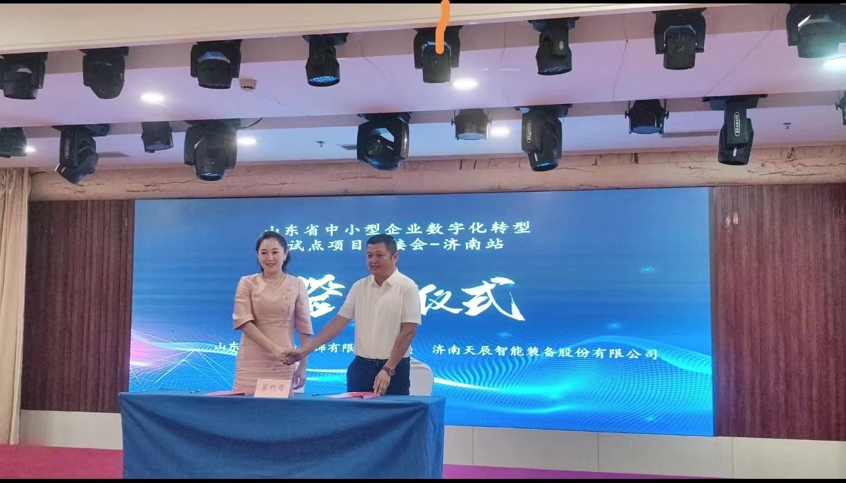 天辰股份助力山東省中小企業(yè)數(shù)字化轉(zhuǎn)型試點(diǎn)項(xiàng)目對接會濟(jì)南站7月17日, 山東省中小企業(yè)數(shù)字化轉(zhuǎn)型試點(diǎn)項(xiàng)目對接會濟(jì)南站成功舉辦。濟(jì)南天辰智能裝備股份有限公司(以下簡稱“天辰股份”)作為國家級數(shù)字化轉(zhuǎn)型試點(diǎn)平臺企業(yè)承辦了此次會議并作演講,分享數(shù)字